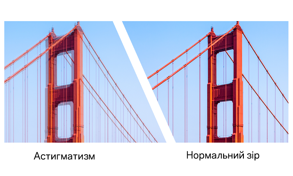 Наприклад, по одному меридіану зображення фокусується на сітківці, а по іншому — перед нею.